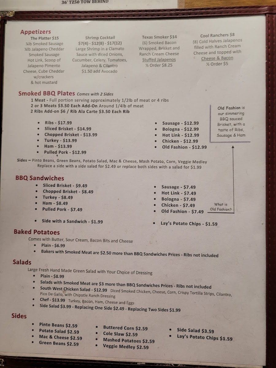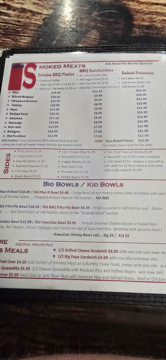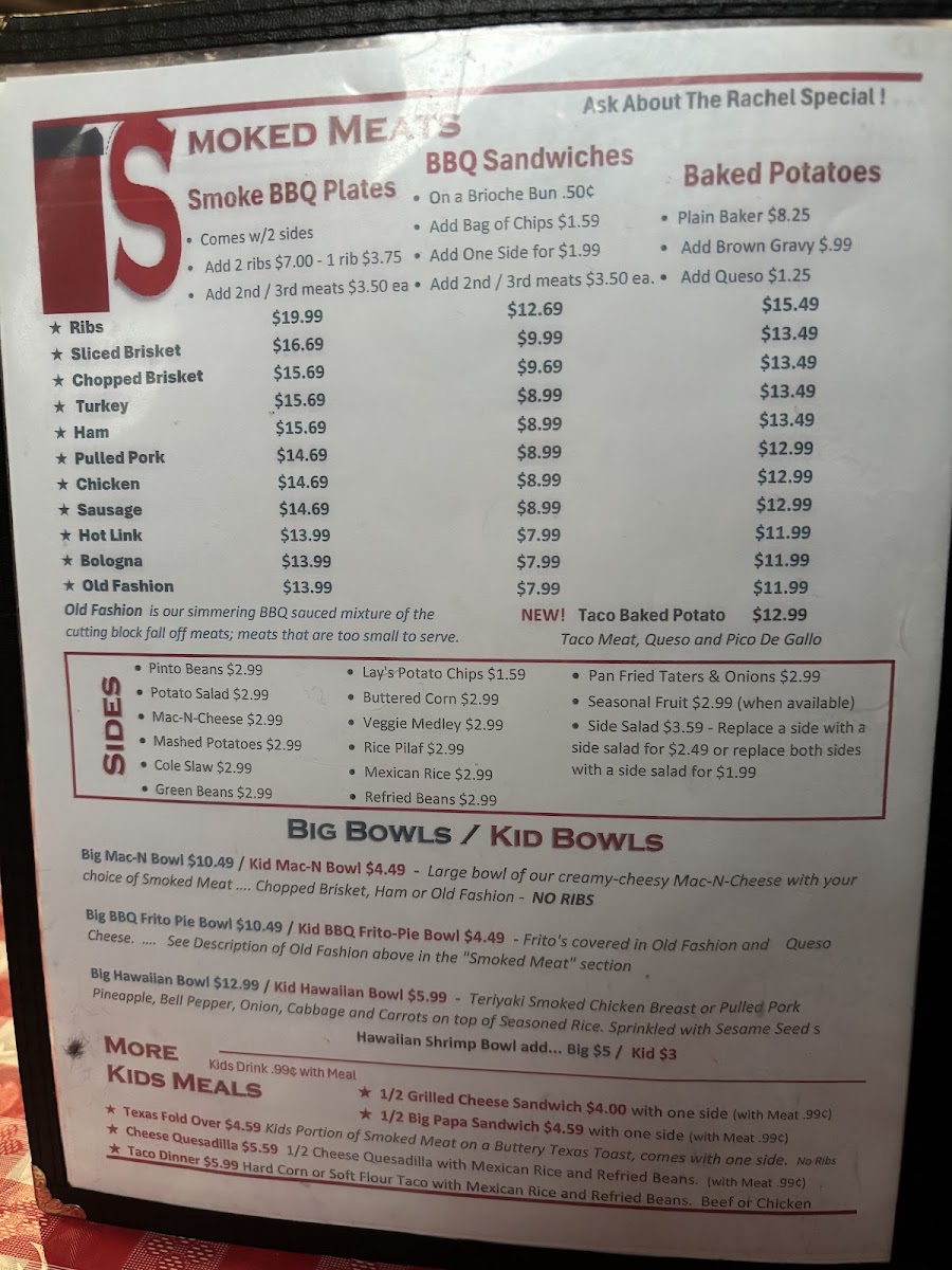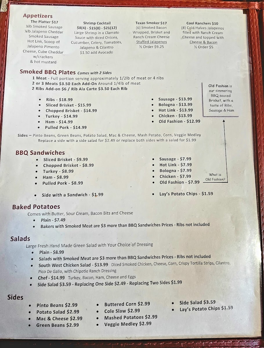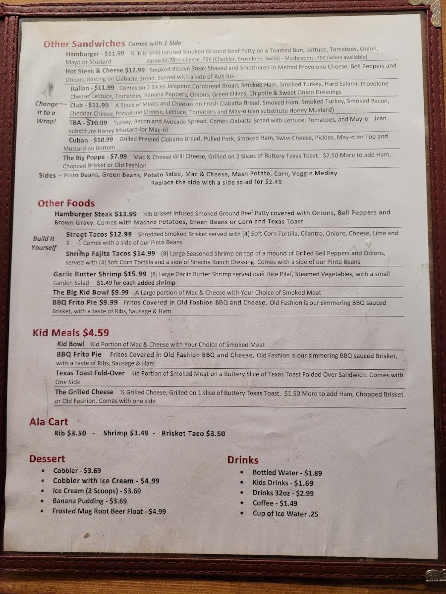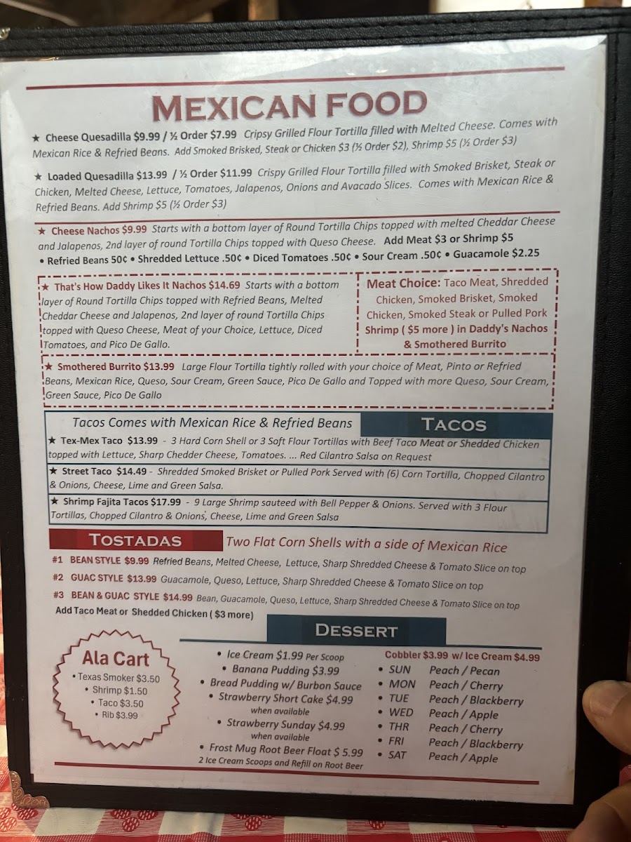 Poor Daddys Smokehouse BBQ Menu
